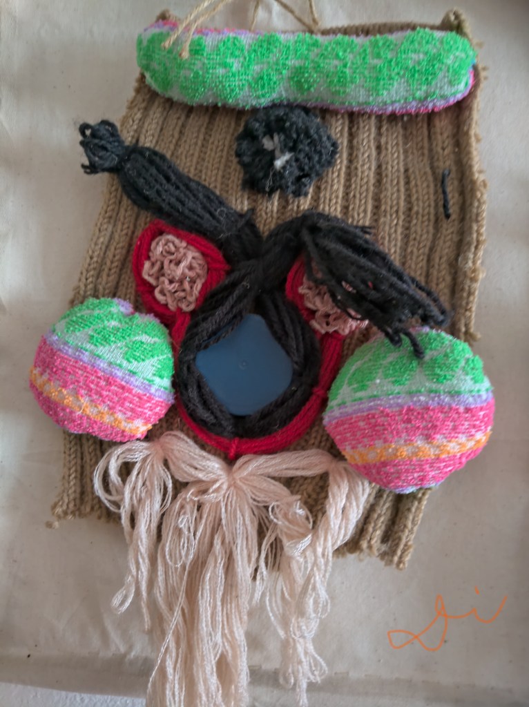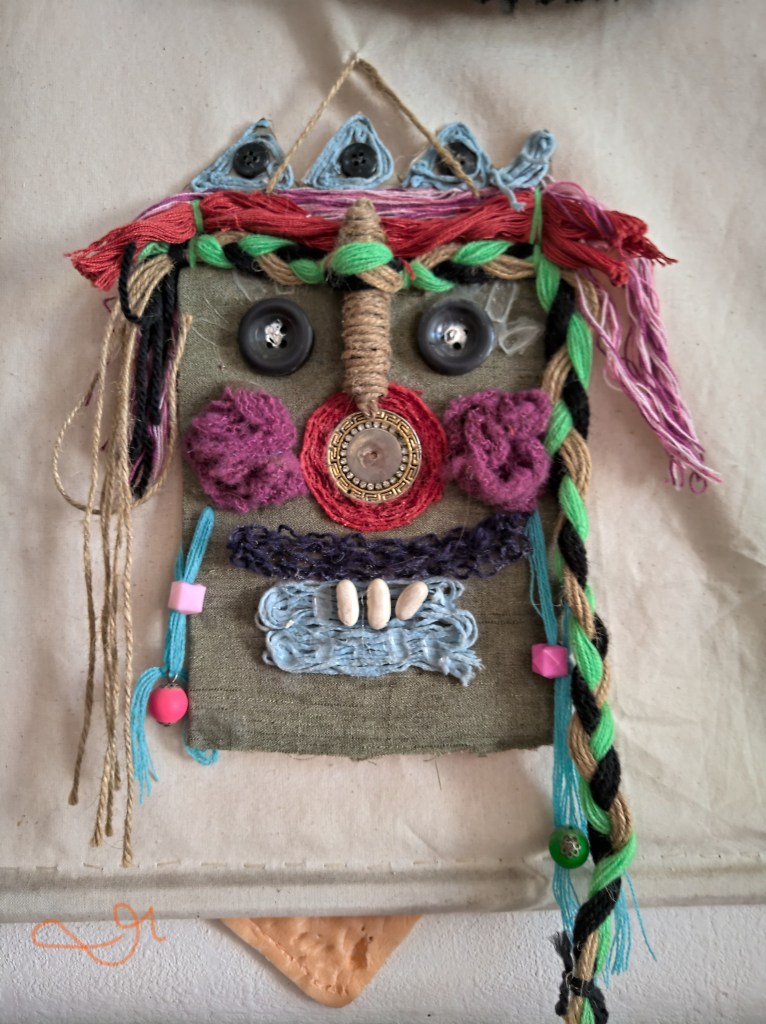 Da. Si manutele mici si materialele m-au impresionat. Una are o jumatate de fes si boabe de fasole si nasturi si cateva fire, laneturi… sfori.