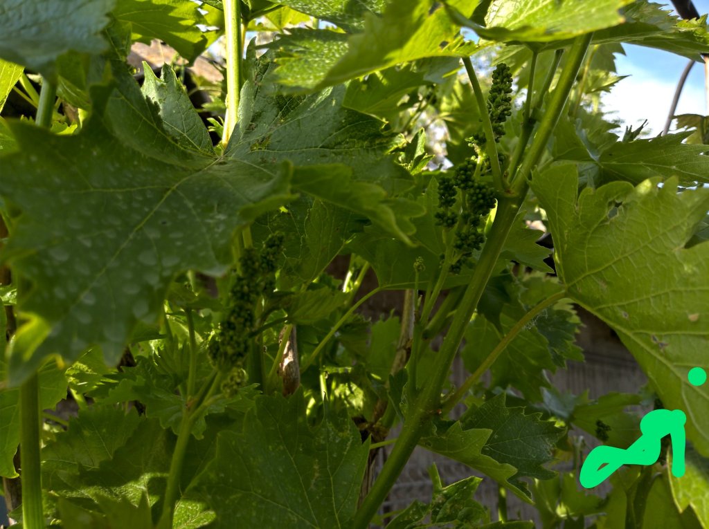Bonus, câteva nuci cat unghia mare și strugurași in formare..