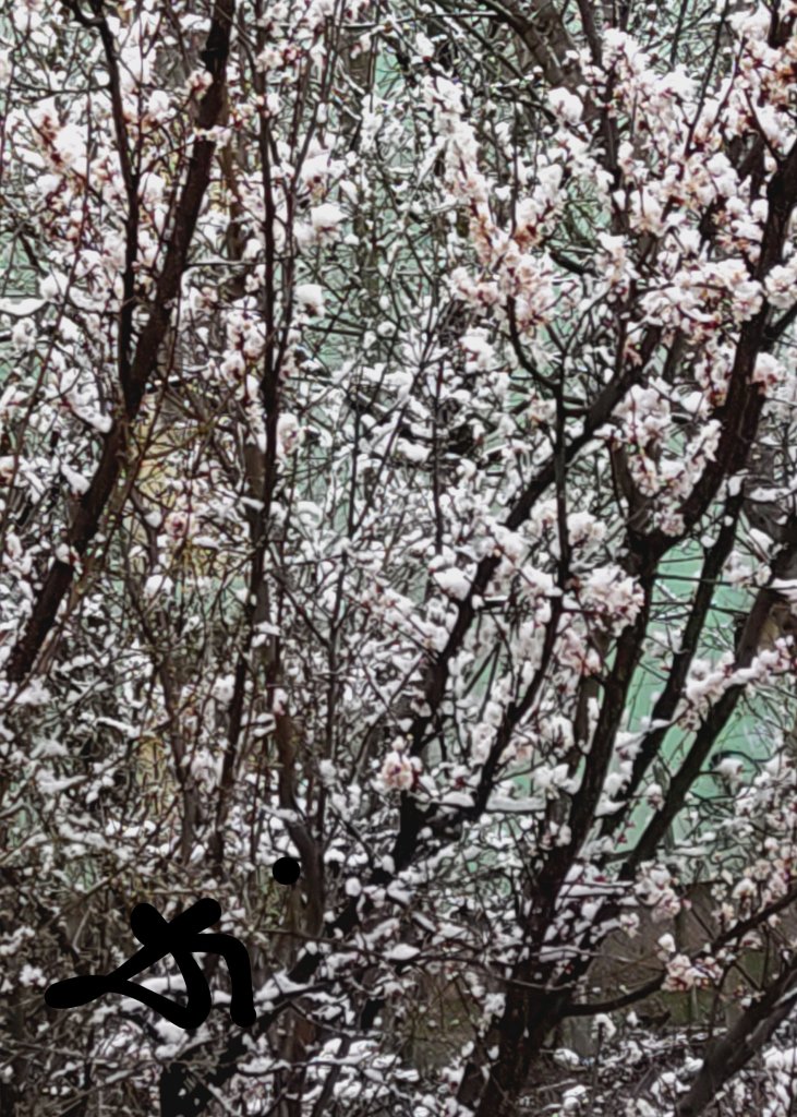 Au zăpadă copăceii înfloriți pe ei! Mare și tare mi-e teama că au înghețat florile. Sper sa infloriM! Mă bucur că placi și floricica blănoasă. 😋